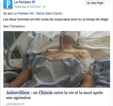 法国媒体关注张朝林遇袭事件。(Le Parisien.fr网页截图)