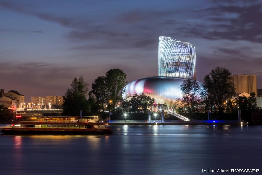 新落成的波尔多葡萄酒博物馆夜景。(La Cité du Vin 脸书)