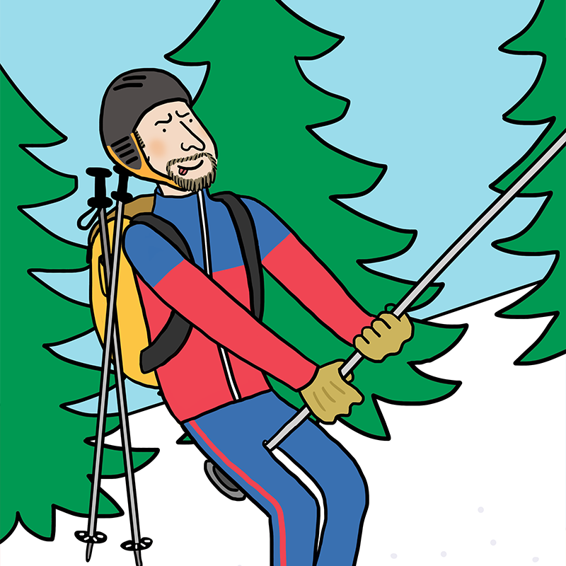 2月,到阿尔卑斯山滑雪去。