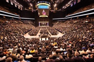 2019年5月17日,逾万名来自世界各地的部分法轮功学员聚集在纽约巴克莱中心,举行2019纽约法轮大法修炼心得交流会,庆贺法轮大法洪传世界27周年。法轮功创始人李洪志先生亲临会场,讲法答疑近2小时。
