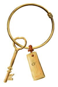 钥匙来了,瘦小的身子钻进锁孔,只轻轻一转,大锁就"啪"地一声打开了。