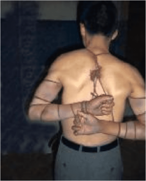 中共迫害法轮功酷刑手段“上绳” (示意图)