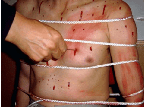 中共迫害法轮功酷刑手段“扎针” (示意图)