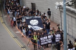 游行于周日(14日)上午10时半于夏悫花园集合,游行至特首办,途经警察总部,不少參與者身著黑衣和反光衣,舉著「停止警暴 捍衛新聞自由」等標語。