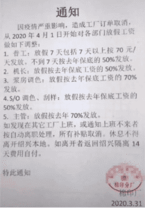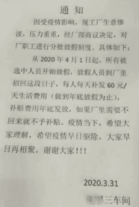 近日有網友在推特發布了多家企業的停工通知單,顯示這些工廠在復工後,又因國外疫情嚴重,訂單被取消,而不得不再次停工。