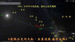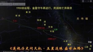 前面讲过,民国丢掉南京、败亡提前到了1949年,本来是对应1950年金星守斗的天象,那么,1950年同时发生的水星守斗宿的天象,也在旧命中对应民国败逃台湾的局面。