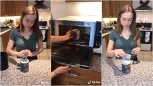 耶歇尔上传的视频是教导英式奶茶的冲泡步骤,她把装水的杯子放进微波炉加热1分钟后,倒入牛奶,再把茶包放进杯子里,然后加入适量的糖,最后搅拌均匀就完成了一杯英式奶茶。