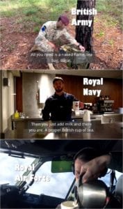 英国驻美大使皮尔斯更是透过推特发表视频回应:“英美关系是由茶来定义的”,还请出英国陆、海、空三军顾问,分别在野外、船舰和飞机上示范正确的泡茶方法,以正视听。