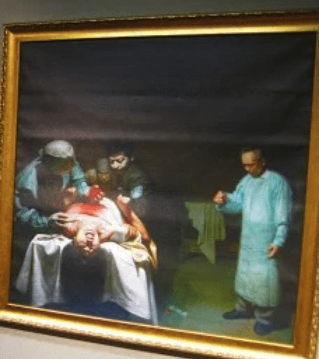 这微小的细节打动了基德斯顿,他表示,整个画作是用象征性手法完成的,从中他可以感受到医生的愧疚,感受到画作展示的痛苦,也感受到艺术家的痛苦。