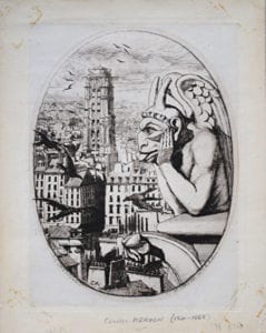 不祥之鸟“思提志”手拄着头,伸出舌头,据说它会啖人肉。诡异诙谐的造型,不仅是观光客的最爱,也是文艺之士创作时的灵感来源。19世纪中叶,法国蚀刻画家夏尔·梅里庸(Charles Méryon)曾为这只石像怪留下一系列创作,并写下如斯文字:“我所呈现的这只怪物真实存在,绝非想像力的虚构物;我在它身上看到了‘贪婪’(七宗罪)的化身。”