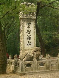 谭延闿墓位于灵谷寺东北,原设计融入汉白玉华表、石狮、牌楼、九福花纹等传统元素,还有圆明园遗物。墓碑由蒋介石题书“中国国民党中央执行委员前国民政府主席行政院长谭公延闿之墓”。1951年,原先的碑文被悉数抹去,换上了“灵谷深松”四字。