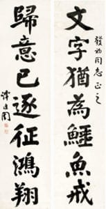 谭延闿的书法在民国初期驰誉一时。民国书法界有真草隶篆四大家之谓:谭延闿“真”、于右任“草”、吴稚晖“篆”、胡汉民“隶”。四大书家中,谭延闿居于首位。他师法颜真卿、钱南园、翁同龢等,用笔锋藏力透,雄浑凝练,书体结构宽薄,貌丰骨劲,有从容气势。