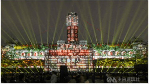 臺灣總統府國慶光雕展演(圖片:中央社/裴禛攝)