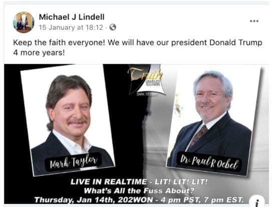林德尔随后于15日下午6时12分在自己的脸书上推文张贴了一个关于川普总统预言的视频,并推文道:“大家保持信念!我们还会让我们的川普总统留任四年时间! ”