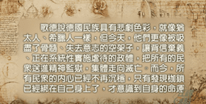 历史留给今世人们许多重要的启示:二战期间,德国22岁的苏菲·萧尔以她宝贵的生命,诠释希望和抗争,我们现在的人也处在重大的历史时刻,静下心来看看当年白玫瑰的传单,感悟自己良心的声音,远离要把你弄到地狱里去的那个魔鬼的召唤。由《“希望之声“.历史上的今天》主持人请人翻译的白玫瑰第一张传单,用中文展示給大家 。这传单是在极权统治下勇气.年轻.知性和神性汇成了一道刺破黑暗的光,盟军用飞机在德国占领区上空播撒白玫瑰的传单,它代表了德意志民族内心深处没有死去的劫后重生的力量,白玫瑰第一张传单: