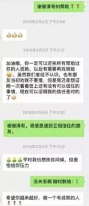 有些人主动找我还钱,他们觉得特别不好意思,我劝慰说真的没关系,我早晚都要还,只是调整下序号而已。2015年11月10日,一位朋友说:我最近特别紧张,如果你方便的话,我的1000元不知是否可以提前还一下。她的序号是53,因她而加我的朋友,我数了数有10个人。