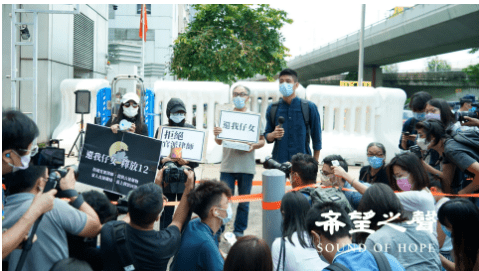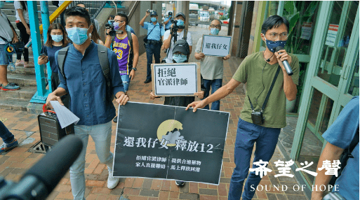 12名被扣港人的家屬中秋節前一日(9月30日)在立法會議員朱凱廸及本土派人士鄒家成協助下,由西區警署前往中聯辦請願要求釋放12人,他們沿途高喊「拒絕官派律師、還我子女、釋放12港人」等口號。