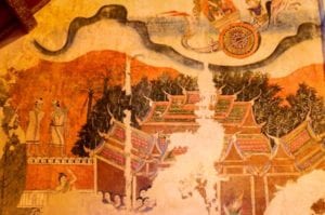 这样走了半天,来到山脚下,见有一个都城,城中的宫殿城楼都是用金银或美玉建造的,城楼上用玉字题写着三个大字“梯仙国”。工人问门人“梯仙国”是怎么回事,门人说:“凡是刚成仙的人就送到这梯仙国中,在这里继续修行七十万天,然后才能升入天界,或者到玉京(有玉皇天尊居玉京中之说),或者到蓬莱(传说中东海外的仙岛),或者到昆阆(昆仑山上的阆苑 ,传说中神仙所居之地),或者到姑射(庄子的《逍遥游》记载“藐姑射之山,有神人居焉”),然后才能得到仙界的官位,被授予符命和官印,就可以自由自在地在天界飞翔了。”