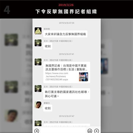 黃國昌28日晚間在臉書披露7張蔡衍明(微信名:蔡明剛)在微信群組裏指示新聞操作的截圖,對話內容包括可大批NCC無格淪為民進黨打手;對於民進黨前秘書長羅文嘉指旺中集團收受“對立政府”資助,指示“可大批羅文嘉”;以及“大家來研議全力反擊無國界組織”等內容。