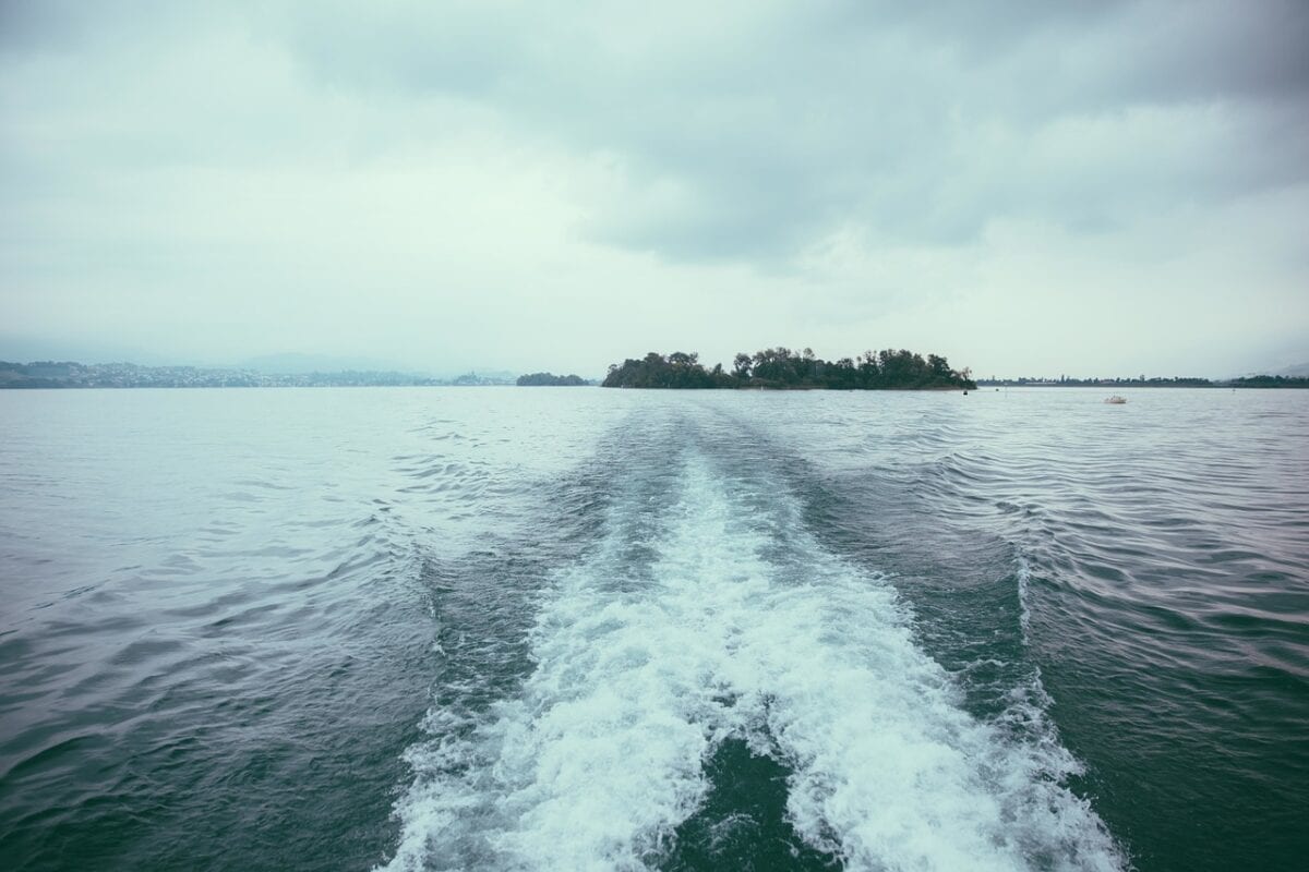 我趴在左侧的舷窗上,可以看到海面上还留着游轮刚刚急速开过的轨迹——一个将近90度的急转弯。