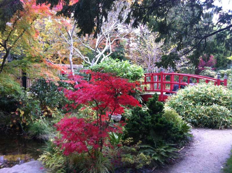 信步在半湿半干的草地上,半扬起头便可看到一片在画中也少见的景色,融合了夏天不愿褪去的影子与秋日悄然而来的脚步:墨绿中染着黄,黄又引出了红,层层叠叠,交错而立。