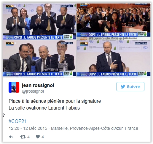 1212日(周六),法国时间1150分,在巴黎东北郊区勒布尔热(Le Bourget)气候会议现场的塞纳会议厅里,195国代表情绪高涨,等来协议最后版的宣布仪式。连日作战的法外长法比尤斯在发言时,激动得声音略颤抖,眼含泪花。
