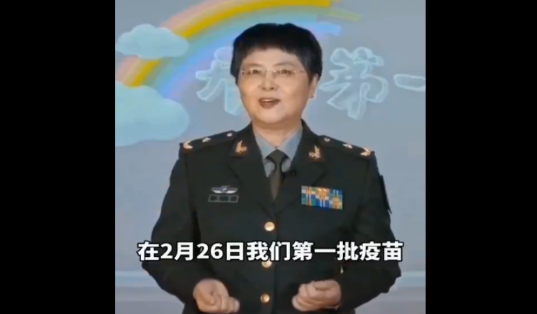 中共工程院院士、军事医学研究院研究员陈薇称,2月26日第一批新冠疫苗(中共病毒疫苗)下线。(视频截图)