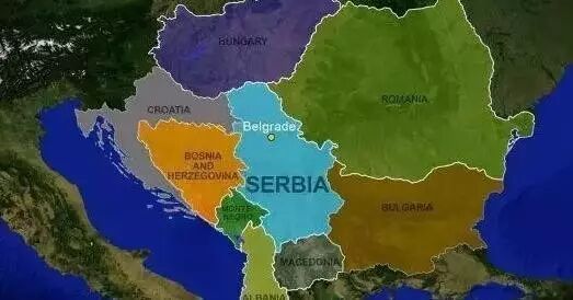 巴尔干半岛地图:蓝色的区域为塞尔维亚