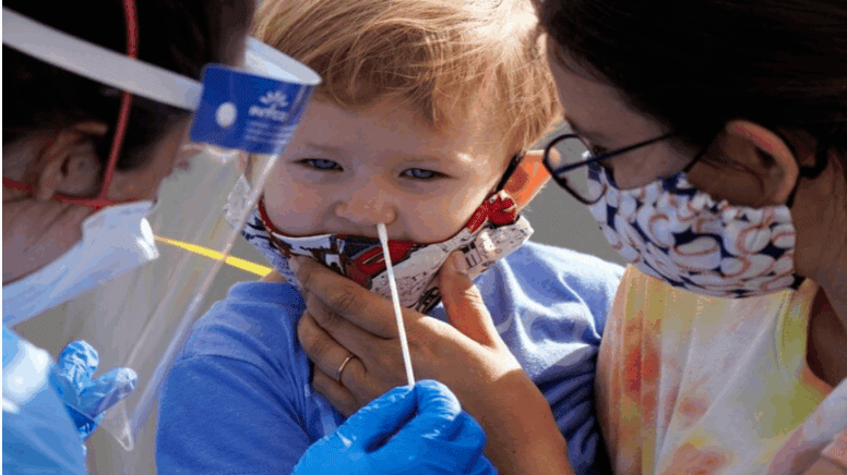 图为美国西雅图市一名幼童接受检疫采样(AP)