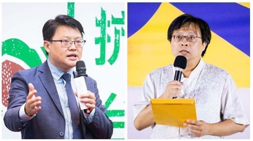 臺灣基進黨主席陳奕齊(左)華人民主書院董事主席曾建元。(圖片來源:大紀元資料照合成)
