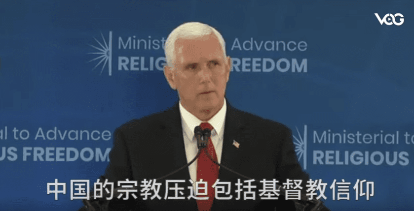 捕获_副本7月18日,美国副总统彭斯在第二届推进宗教自由部长级会议上表示,「美国人民永远坚定地与有信仰的中国人民站在一起」(视频截图)