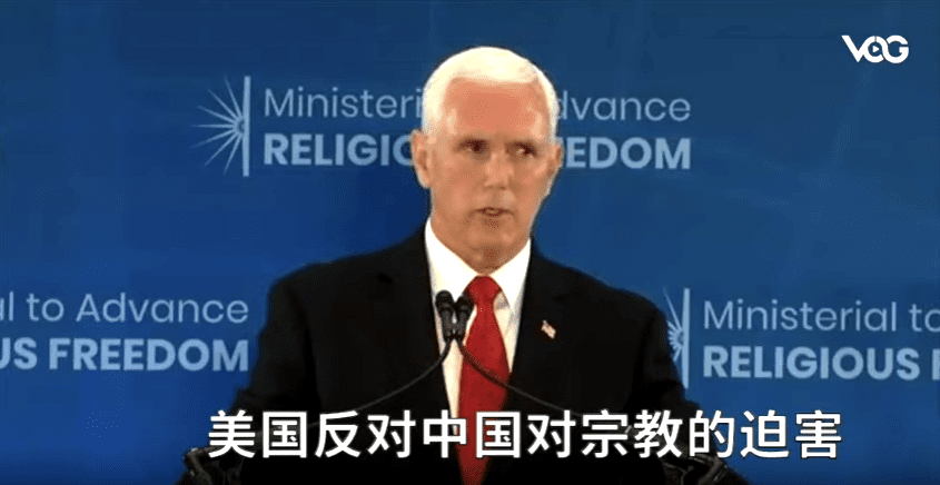 捕获_副本7月18日,美国副总统彭斯在第二届推进宗教自由部长级会议上表示,「美国人民永远坚定地与有信仰的中国人民站在一起」(视频截图)