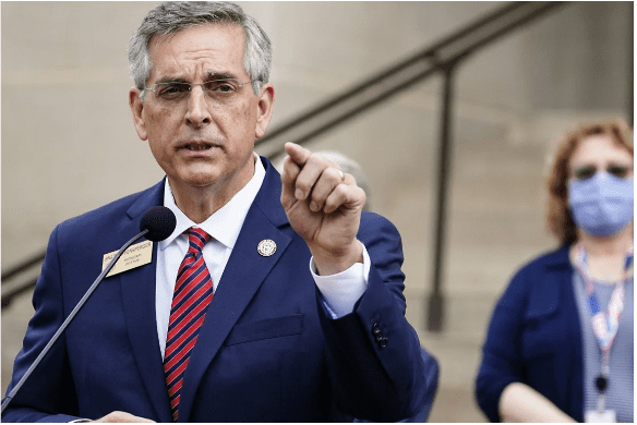 2020年11月13日,被告上法庭的乔治亚州州务卿拉芬斯珀格(Brad Raffensperger),11日在亚特兰大宣布重新计票。 (AP)