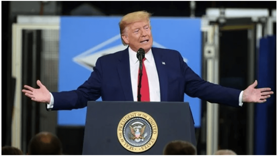图为川普总统1月30日在密歇根庆祝《美墨加贸易协议》签署完成。(Jacob Hamilton/AP)