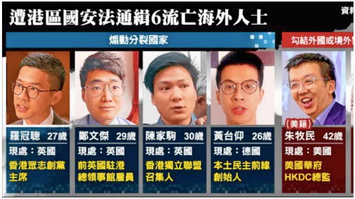 遭國安惡法通緝的香港海外流亡人士 。(網路圖片)