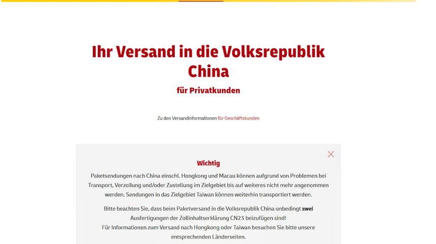 DHL发布的公告。(图片取自DHL网站) _Fotor