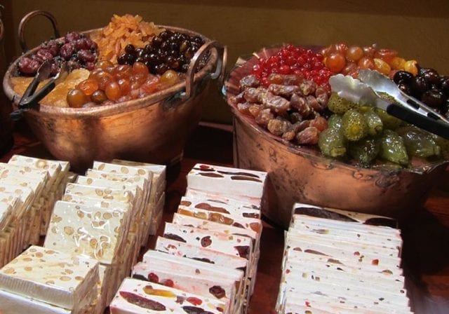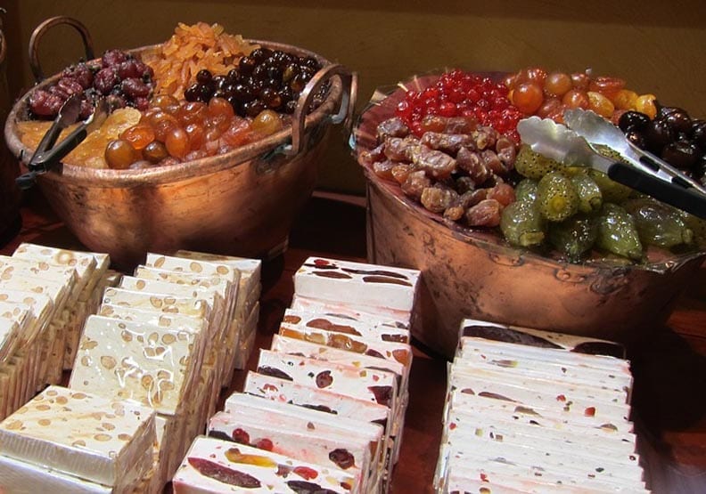 除了四乾果,蜂蜜杏仁黑色硬牛軋糖代表罪惡的力量,松子開心果和胡桃製成的白色軟牛軋糖則代表純潔善良。象徵基督從東方來的椰棗,還有分別象徵富裕和活力的柑桔和葡萄,家家戶戶院子裡種植的蘋果、梨、榅桲等各式水果,以及從養蜂農家裡買來蜂蜜製成的果乾,都是選項。(摘抄遠見雜誌)