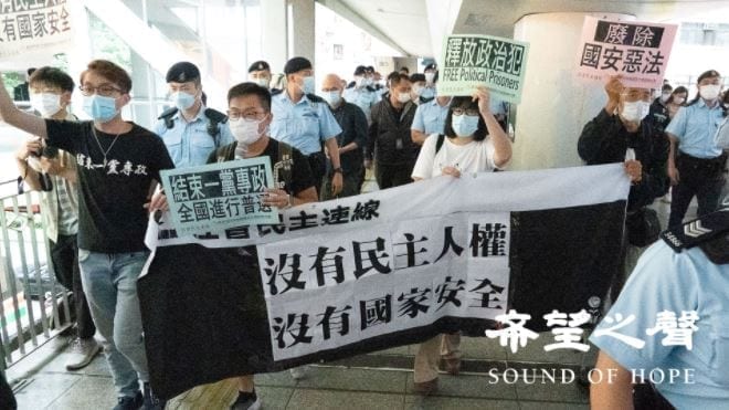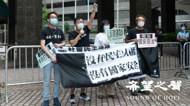 【希望之聲2021年4月15日】(本台記者鄭銘採訪報導)國安法生效後,港府星期四(15日)首次主辦“全民國家安全教育日”。社民連及支聯會等成員到會場外抗議,批評當局以國安法大肆拘捕民主派人士,港人表達空間嚴重收窄,所謂“國家安全”實乃“中共安全”。