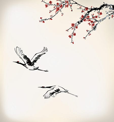 ink winter sweet and crane