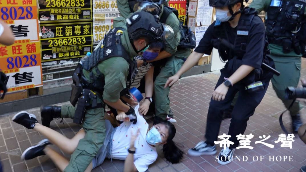 警方9月6日在旺角向一名無辜的12歲女童施暴,引起全港憤怒。 (攝影 鄭銘)