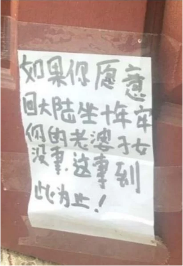 2018年9月,郑聪颖和另外一位未知同谋涉嫌制作了一个威胁字条,贴在某男1号住宅的外面,说「如果你愿意,回大陆坐10年牢,你的老婆子女没事。这事到此为止。」 2019年4月, 另外的同谋者给某男1号发送了一个包裹到住宅。这个包裹里有一封信和一个视频,威胁要伤害某男1号在中国的家人,以逼迫他返回中国。