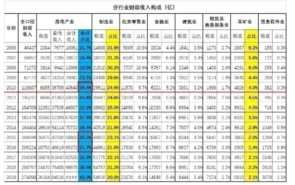 老蛮写道,本文将就各大行业的财政贡献比值从2006-2019年的演变趋势做一个分析。