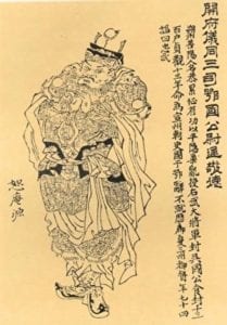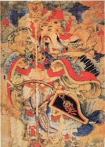 太宗登基后,有段时间心绪不宁,病体难支。尉迟敬德与秦叔宝主动披挂上阵,手执钢鞭,在宫门口为太宗护侍。太宗病自尉、秦二将站哨后逐渐痊愈。太宗见二将夜夜站岗,心中不忍,便让画匠画二人全身像贴在宫门上,效果一样。从此民间把他们二人视为门神,把他们影像加以拓印贴到门上,此即中国民俗中贴门神风气之由来。
