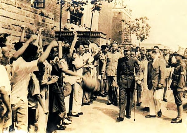 毛泽东命令各地军队,强行对日受降,强行收缴日军武装,把反抗中共受降的中国人当汉奸处理。毛还恬脸给自己封了一个“中国解放区抗日军总司令”头衔,擅自指定受降地点,命令日军司令冈村宁次“只能向中共军队投降”。8月12日,中共军队在华北用运动仗包围3万不愿意向他们投降的日军,打了一场从未有过的“抗日大战”!为“下山摘桃子”,毛和中共都拼了!