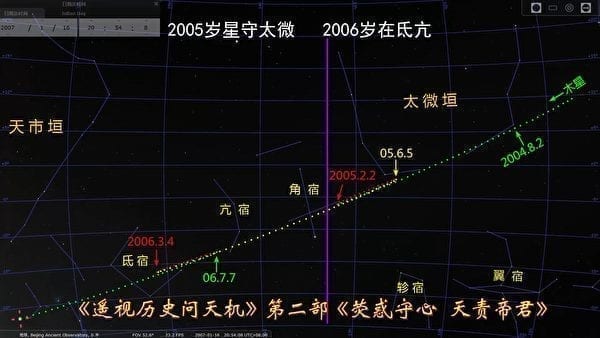 12年后的2005~2006年,也是岁星守太微、守氐亢,也没有穿过太微和角宿的界线[1],也与《推背图》的岁在角亢不合。