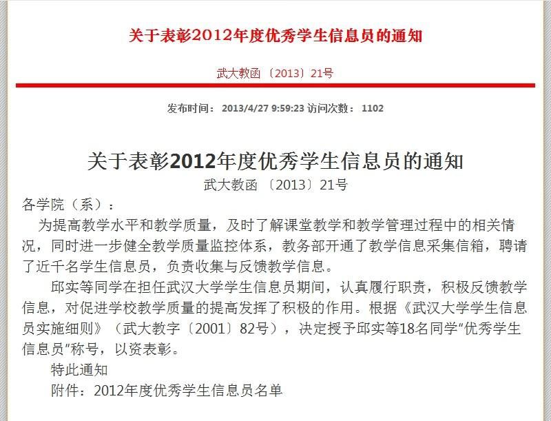 母校啊,爱之愈深,责之愈切。单就信息员制度而言,南开大学在众多知名高校中算的上是特别红了,却不一定比得上中科大或复旦那么专。南开大学最早于2006年设立信息员(另一说是1999年,见下文所注的《中国教育报》消息),此后每年必设,每年的名单网上都可以找到。每年有优秀信息员的评选,选上了不仅有荣誉证书(已确定属实),估计也会有一笔小钱入账(这个还没有确证)。这些,在别的学校那儿都见过,不算新鲜。南开之所以能够成为信息员制度的重灾区,乃是因为有以下几个惊得你眼球要掉下来的特色: