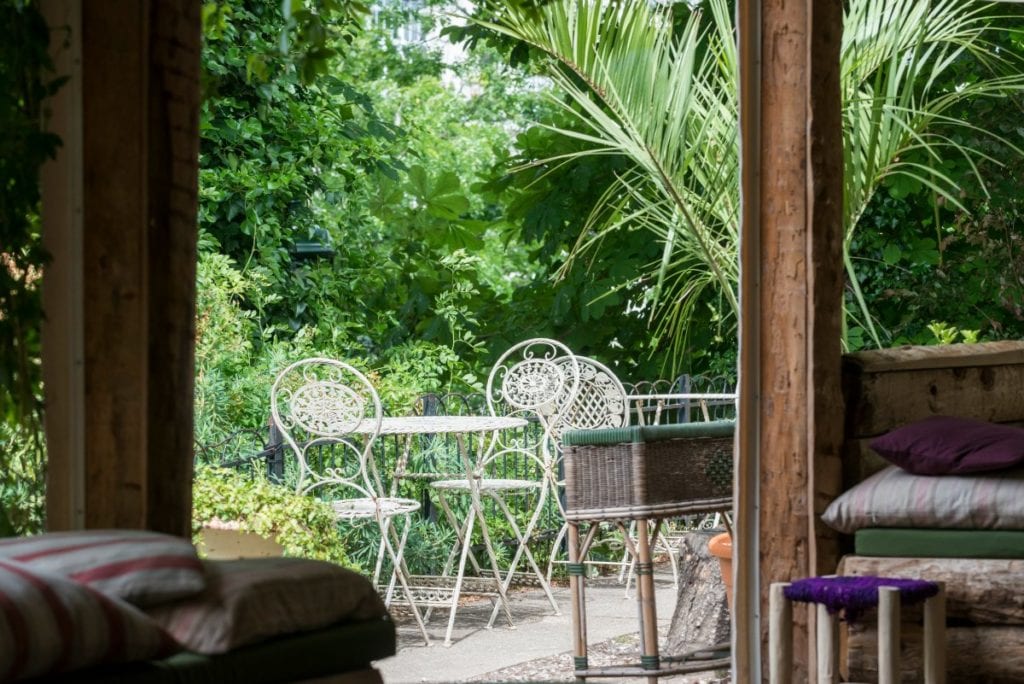 巴沙玛所说的 Pavillon Puebla,在公园的山顶,充满希腊与罗马风格的小亭庙中,可领略到巴黎的全景。坐在宁静的板栗树下,摩洛哥扶手椅中,享用开胃酒和美景,很是惬意,夜幕降临时还有舞池派对。