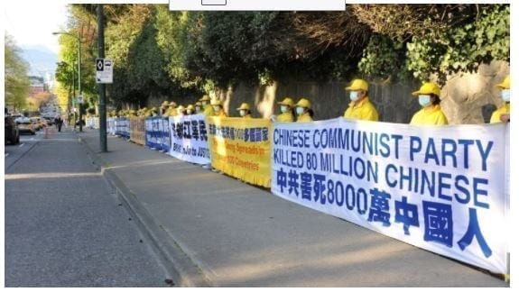 【希望之声2021年4月23日】(本台记者曾雪温哥华采访报导)昨天(4月22日)傍晚,一百多名法轮功学员在中共驻温哥华领事馆前举行集会,纪念中国历史上最大规模的和平请愿22周年,同时谴责中共近来在香港对法轮功学员和真相点的袭击。