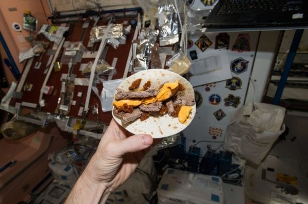 跟俄国人合作的时候,俄国的东西挺好吃的,他们也有类似我们这样的食物,他们还有罐装的食物,有很多罐头鱼。我们美国人好象不太给我们鱼吃,所以我很喜欢俄国的鱼。其实食物的种类还不错,虽然没有米其林饭店那么高档,但是比我当光棍的时候自己烧的饭好吃多了。