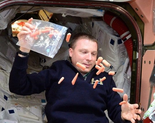 在地球上吃什么东西,重量就把它拖到胃里去了。在太空怎么办呢?我开始也挺担心的。其实身体是非常非常奇妙的一个系统,肌肉自己会适应的,肌肉自己就在起作用,把这个食物从喉咙一步步带到胃那儿去了。